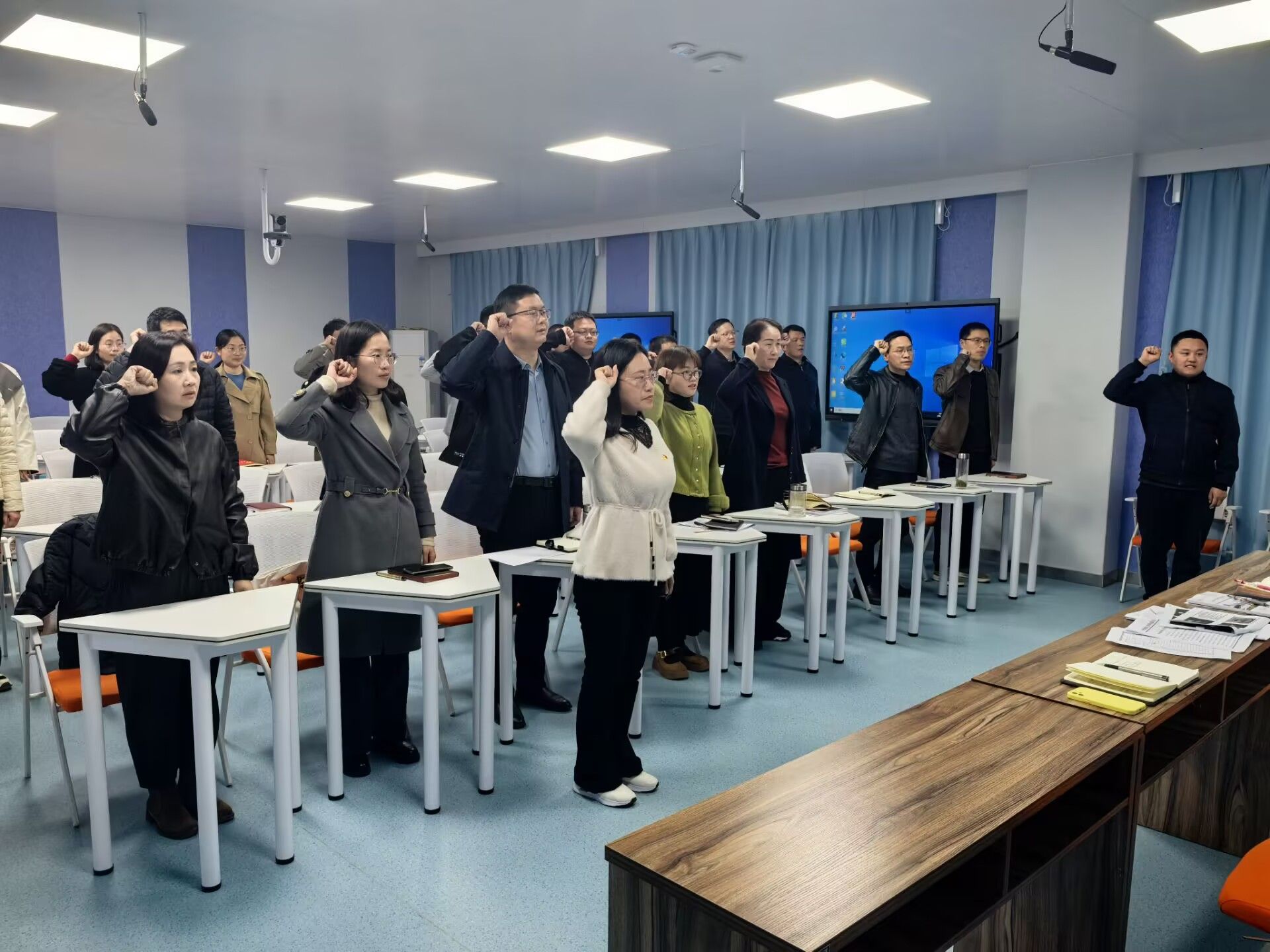 活动伊始,全体党员庄严重温入党誓词,铿锵誓言回响会场,彰显了党员对党的忠诚与为共产主义事业奋斗终身的坚定决心。随后,支部集中诵读《中国共产党章程》第二章第十一条至第十八条关于党的组织制度的重要内容,进一步明确党的纪律要求和组织原则,强化党员的责任意识与规矩意识。