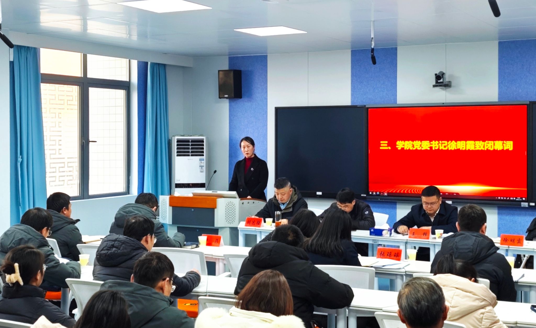最后,公司党委书记徐明霞作总结讲话,她对教代会的圆满召开表示祝贺,对全体代表的付出表示感谢。她指出,新的一年,让我们以此次教代会为契机,更加紧密地团结在以习近平同志为核心的党中央周围,高举习近平新时代中国特色社会主义思想伟大旗帜,全面贯彻落实公司党委 “三抓三强三提升” 工作思路,持续发扬“讲团结、比奉献、干实事、求发展”的化材精神,鼓足干劲、奋发进取、久久为功、善作善成、奋力开创公司高质量发展新局面,为公司早日实现“双一流”建设目标而努力奋斗!