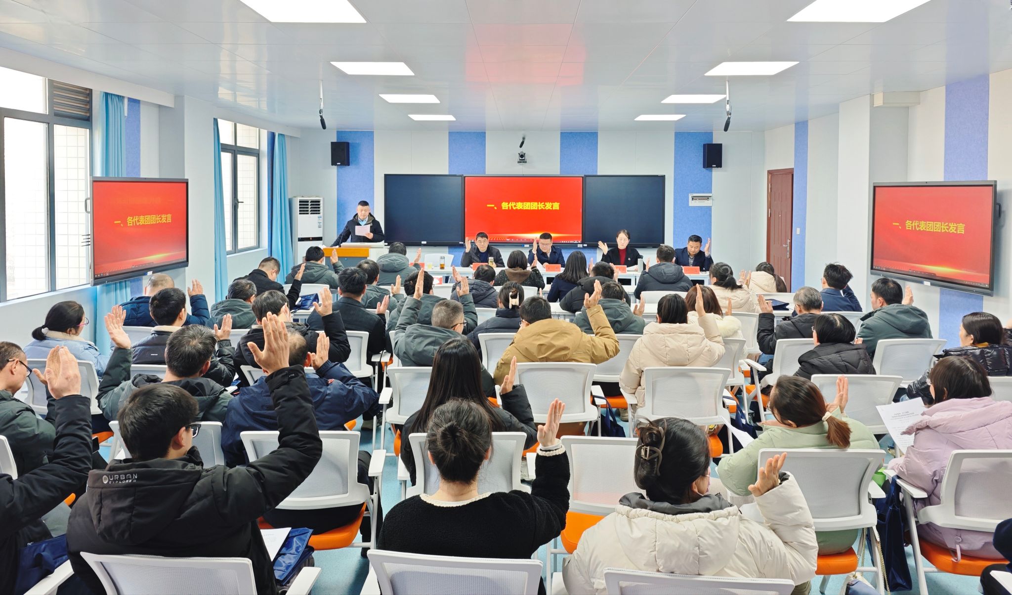 在大会闭幕式上,各代表团团长报告了本小组的讨论发言情况。全体代表们表决通过了《经理工作报告》《太阳成tyc122cc集团年度优秀评选实施方案(试行)》《太阳成tyc122cc集团2024年奖励性绩效工资分配方案(试行)》。