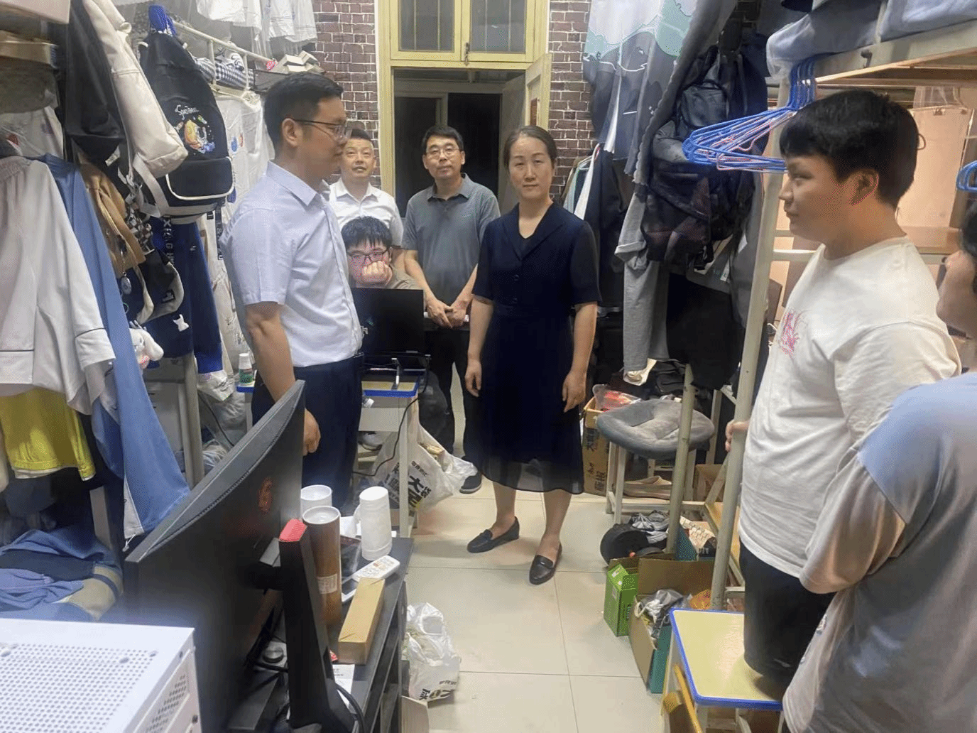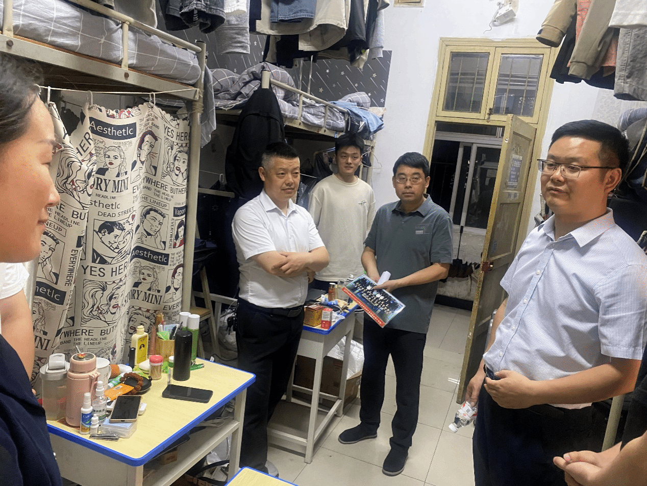 为深入贯彻 “三全育人” 理念,切实加强员工教育管理与服务,全面掌握员工学习生活状况,5月13日晚,太阳成tyc122cc集团经理王锋、党委书记徐明霞、副经理颜永斌、党委副书记胡远强及各年级辅导员,深入员工寝室开展走访调研与安全检查工作。
