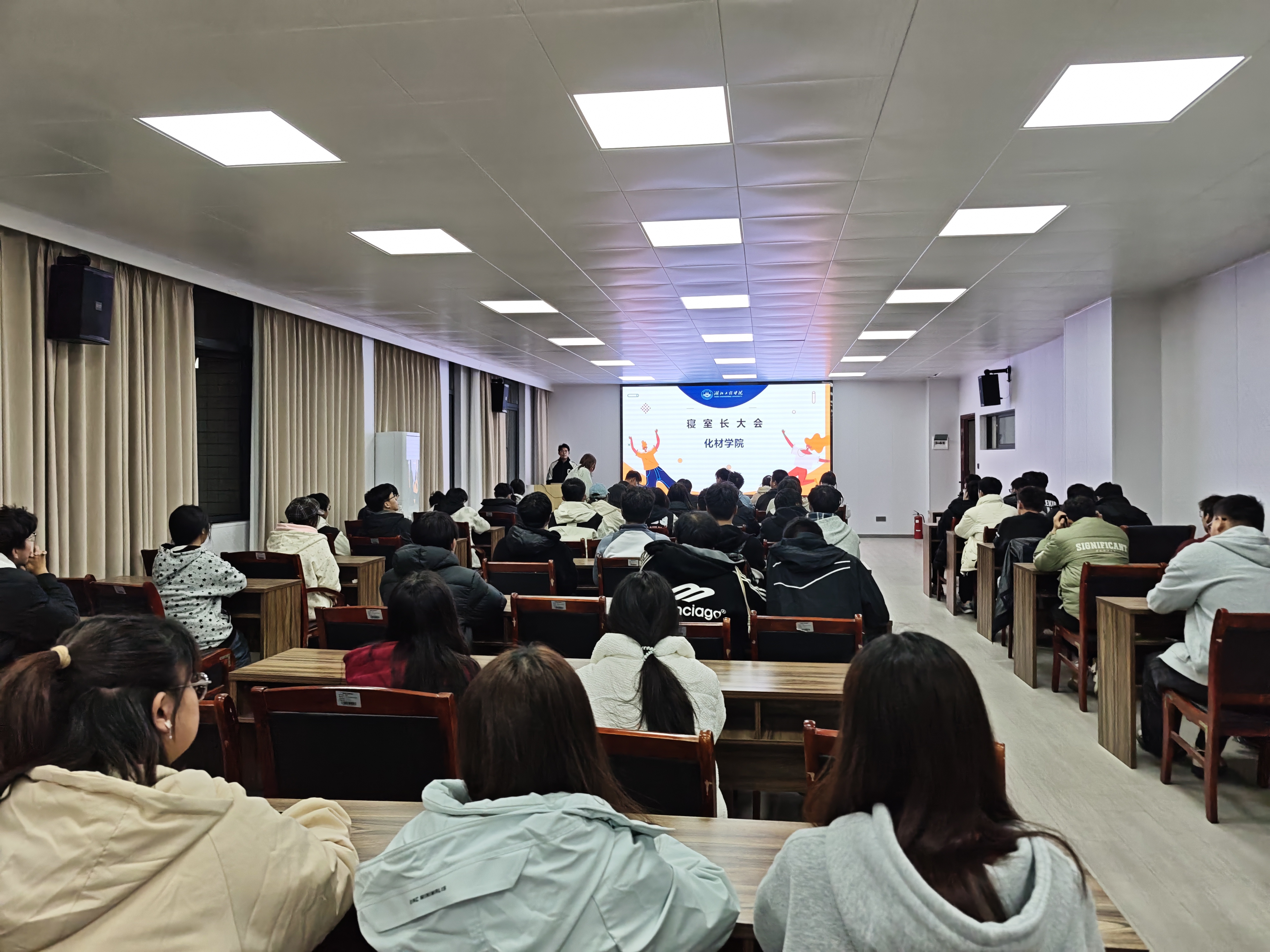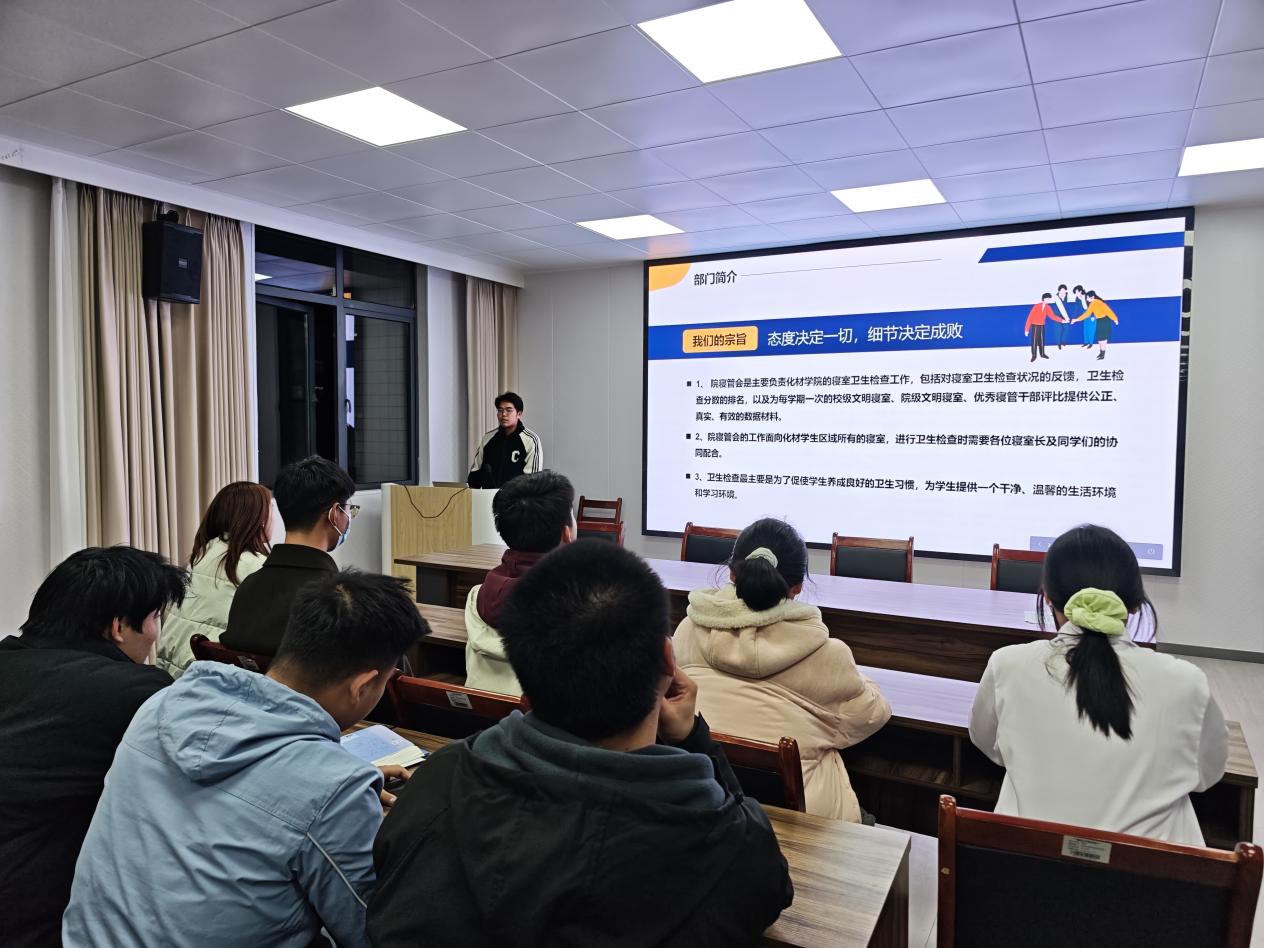 化学与材料科学公司于2025年11月28日下午18时在化材楼303教室召开了2025级寝室长大会。本次大会由院寝管会组织并主持,寝管会全体成员及80余名寝室长全员到齐,年级辅导员刘晨晖老师全程参与指导。
