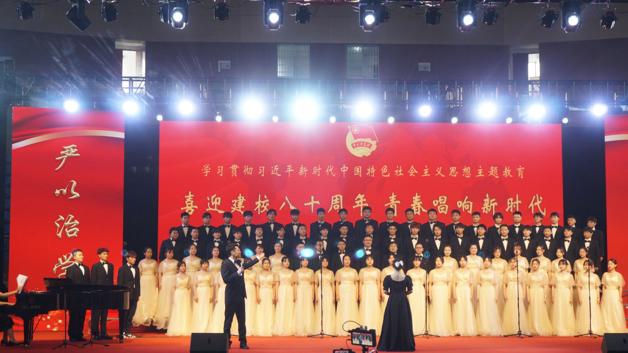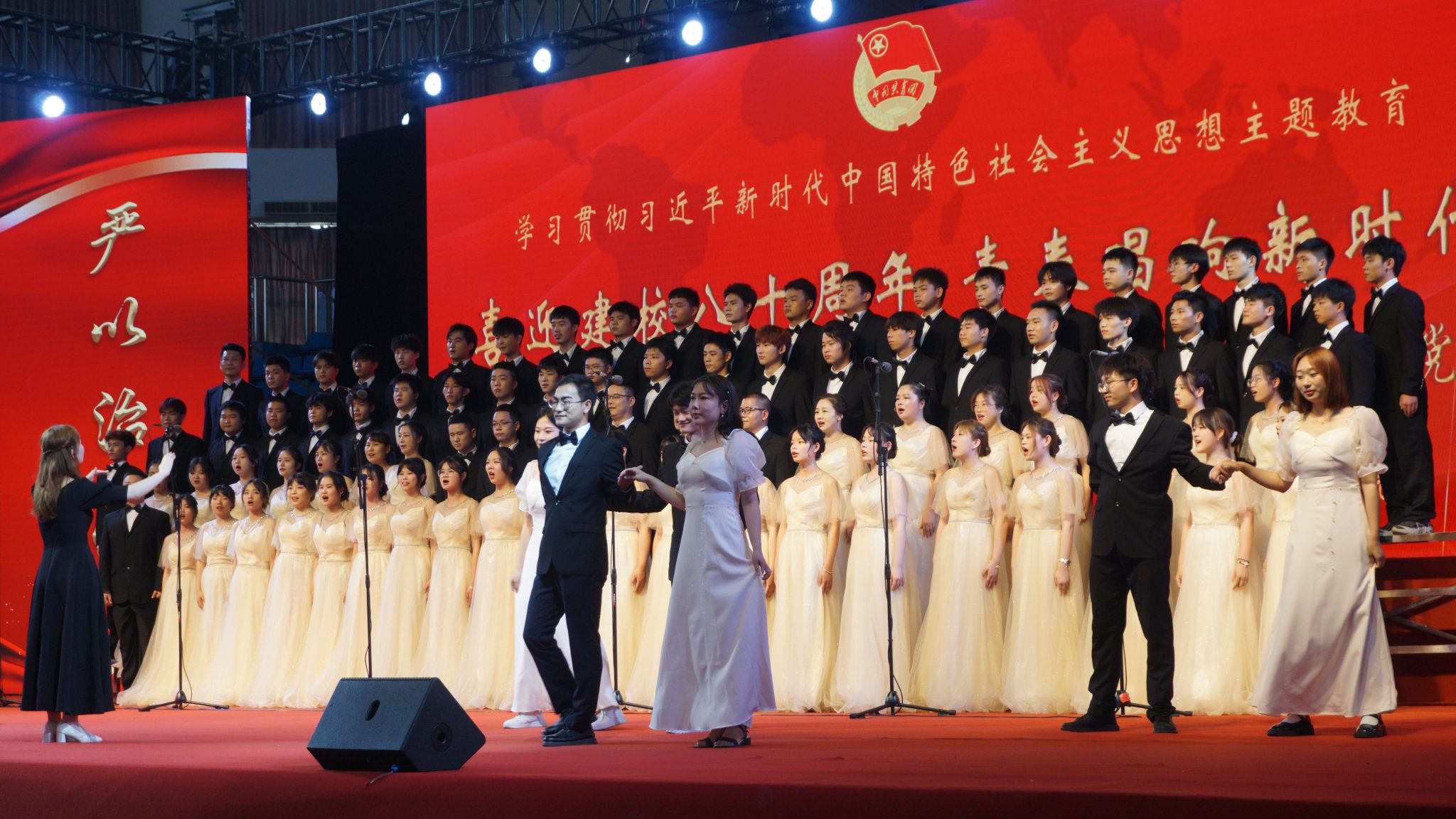 5月28日,为深入学习贯彻习近平新时代中国特色社会主义思想,喜迎八十周年校庆,青春唱响新时代——“五月的鲜花“合唱比赛在湛林体育馆举行。公司师生合唱团演唱的《青年友谊圆舞曲》《黄河船夫曲》,获得第一名的优异成绩。