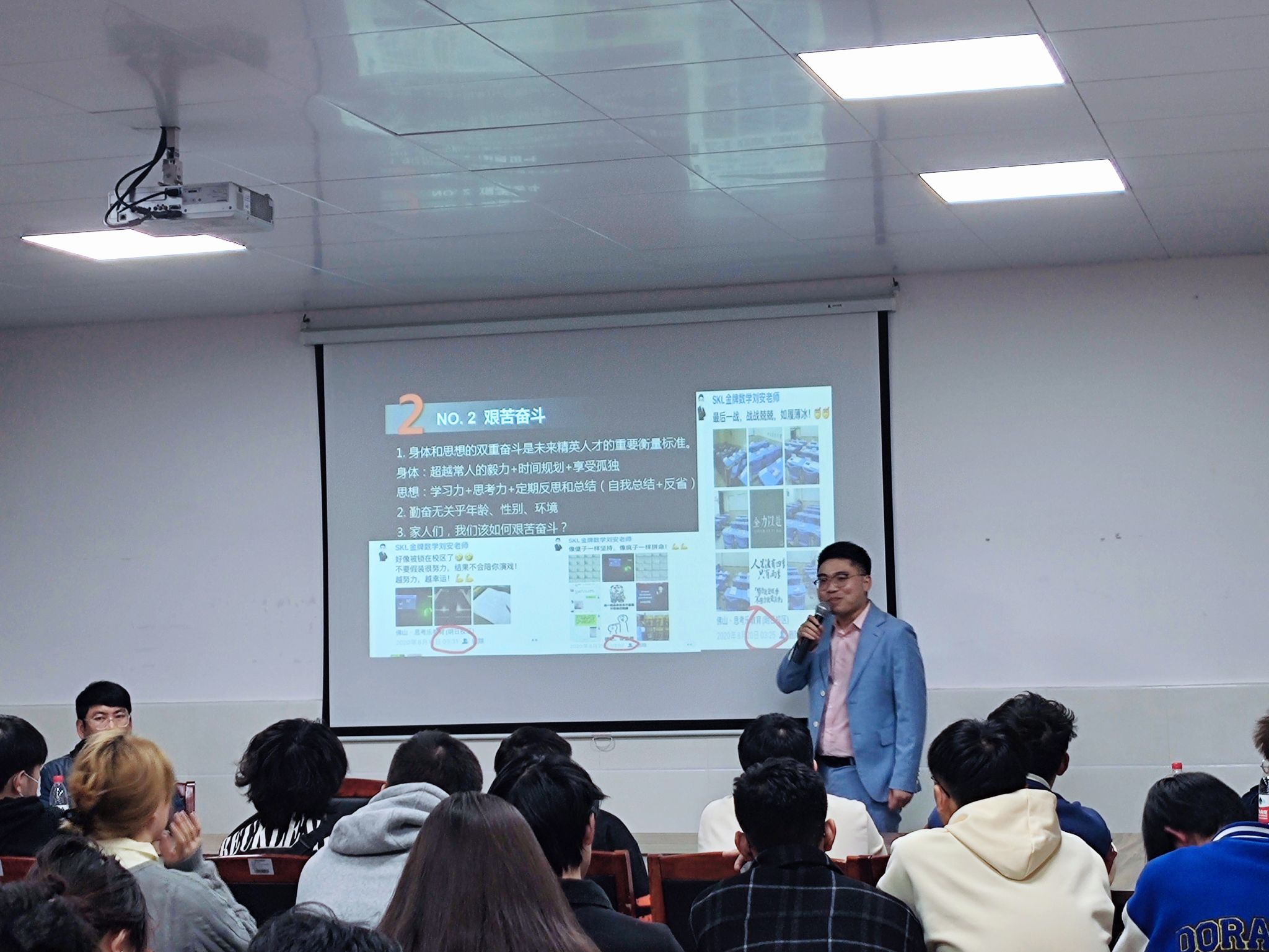 刘安员工分享了他在校的求学经历和毕业后的工作经历,从树立理想、艰苦奋斗、团队精神、情商+逆商、阳光心态+正能量等五个方面向同学们阐释了在生活中应该如何成为更好的自己。刘安员工勉励学弟学妹们“善良、勇敢、奋斗、快乐,用梦想传递梦想,用生命影响生命。”